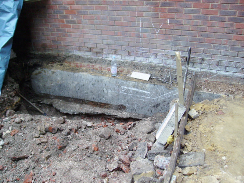 Pod jezírkem se odkopala zemina a základ není odskočený, nýbrž svahovaný (o trochu víc betónu, ovšem méně práce s bedněním základu).