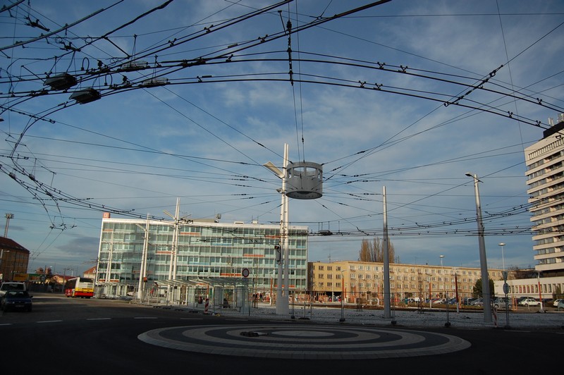 Trolejky vedou pěkně k hlavnímu nádraží v Hradci Králové.